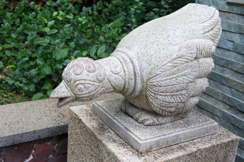 池边树立着众多萌萌的吐水雕像