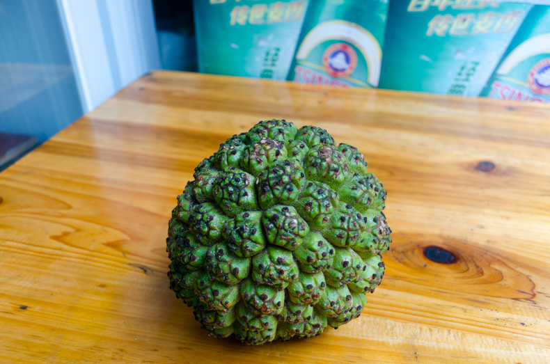我们先去吃早点,我看到一个奇怪的花菜,问老板,老板说是菠萝,后来兆远他们说是波罗蜜