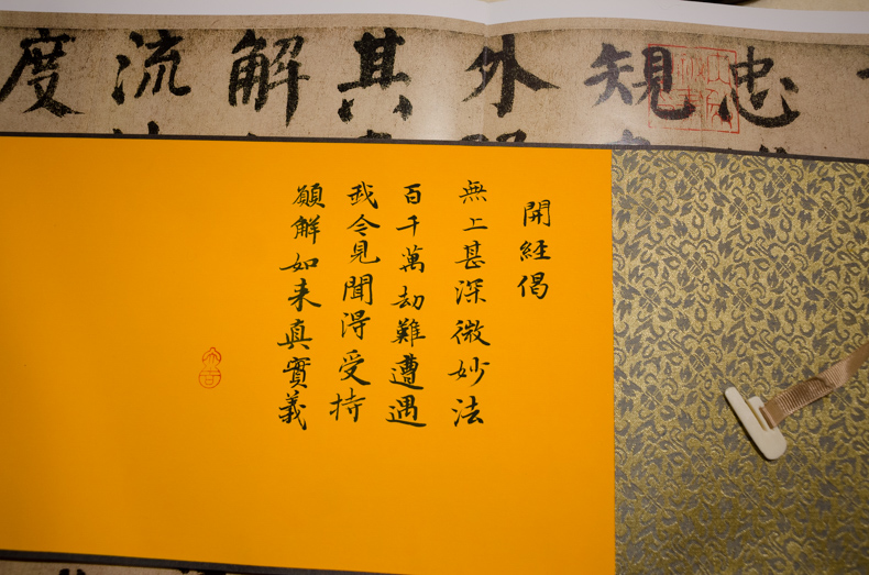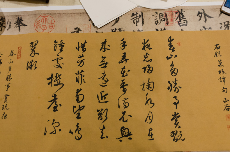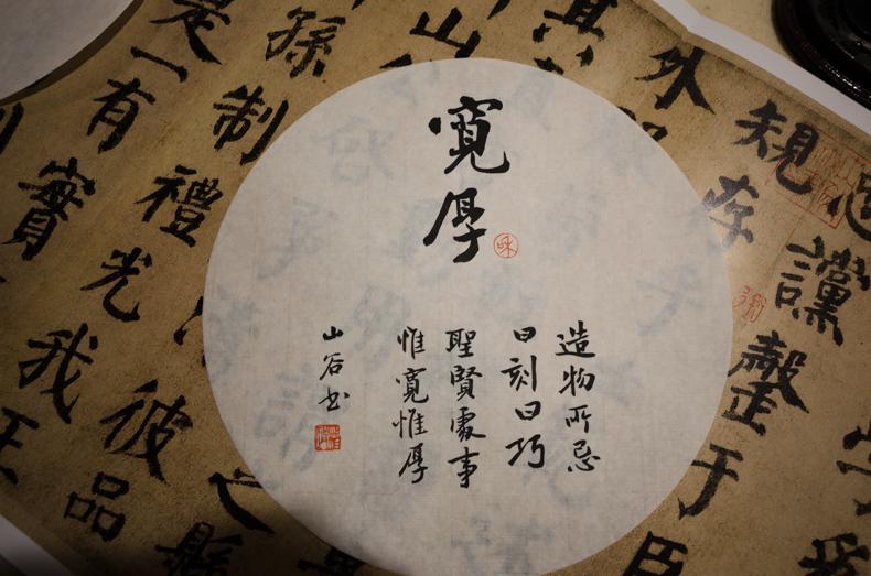手卷是古人常见的书法载体,以其长而得趣,可分为首、中、尾三部分,卷首可写正文相关的序,并留白以便题跋,卷中可书长篇或短文。长篇需注意分段留空;短文各篇自成一体,均有落款,亦可一文分书真草,相映成趣。卷尾留空以待赏玩留跋