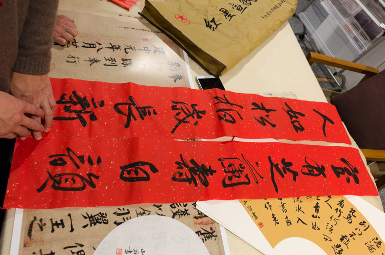 这是对联,红底为春联,对联因高悬过头,首字需大,以求平衡,尾字与之呼应,一般也宜大