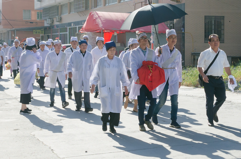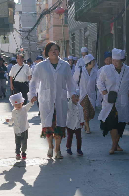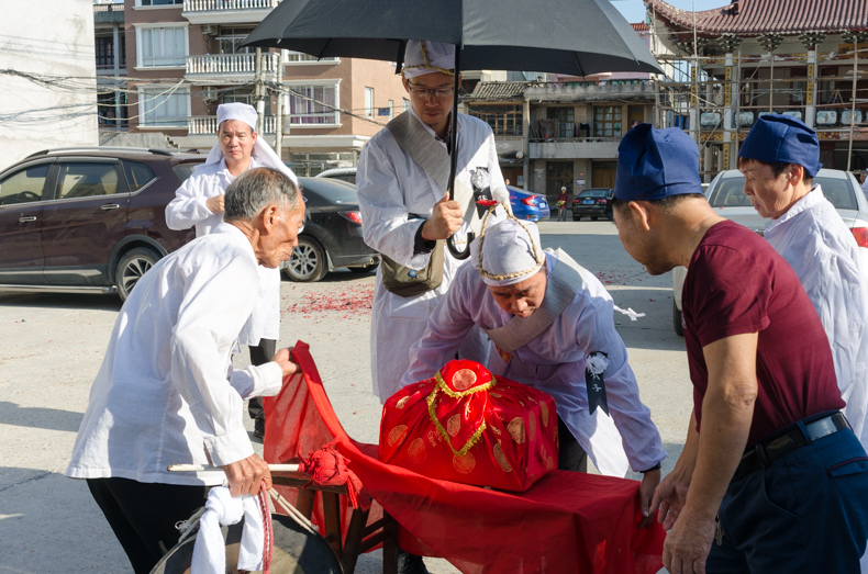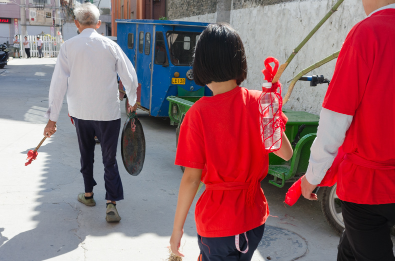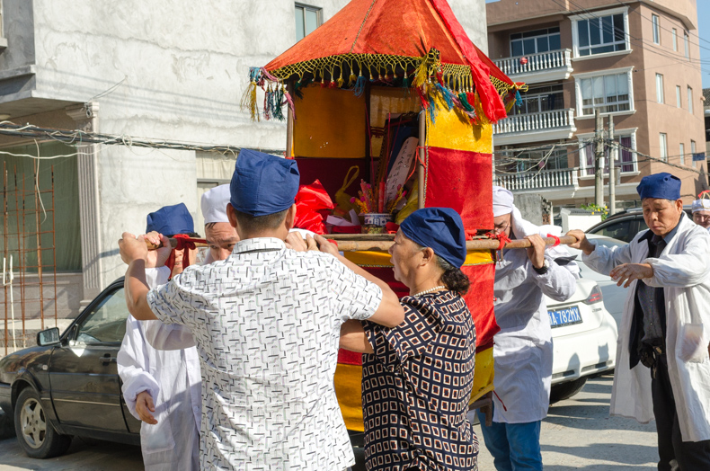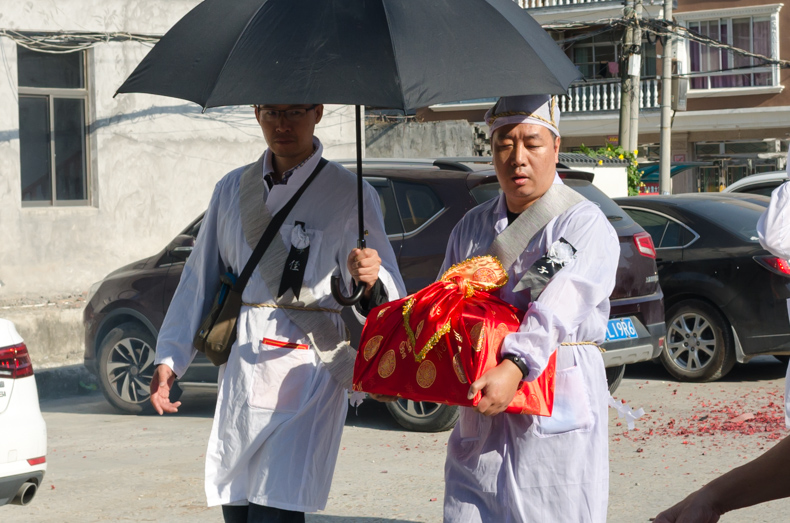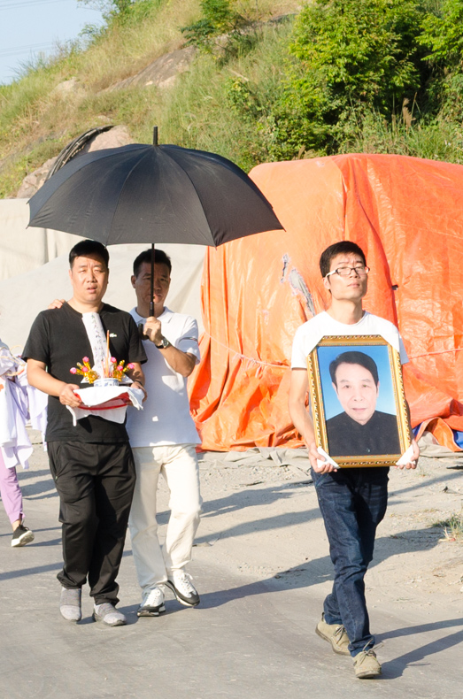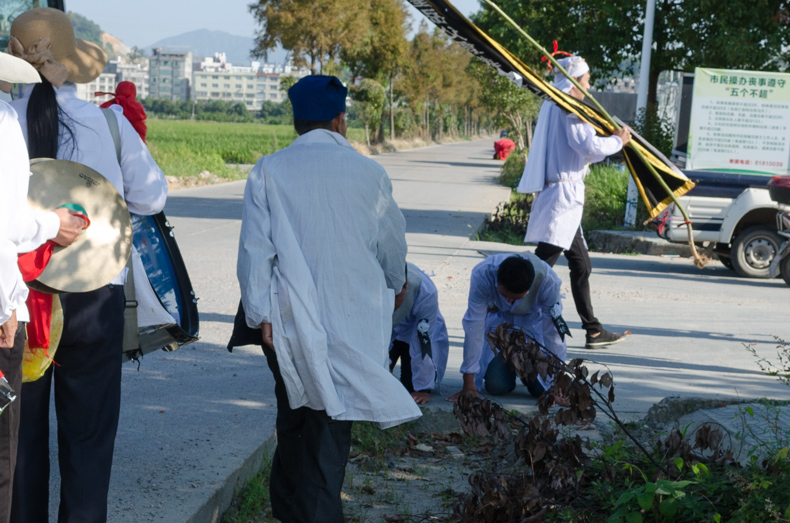 最近几年,乐清丧事改革,不准进行放焰口等迷信活动,所以,出殡前一天,在白天就抬着纸钱去化了,我到晚了一步,只赶上化了纸钱回来的队伍。