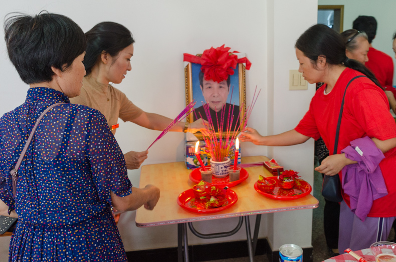 第二天清晨,遗像和灵骨从火葬场请回到稻坦广场上