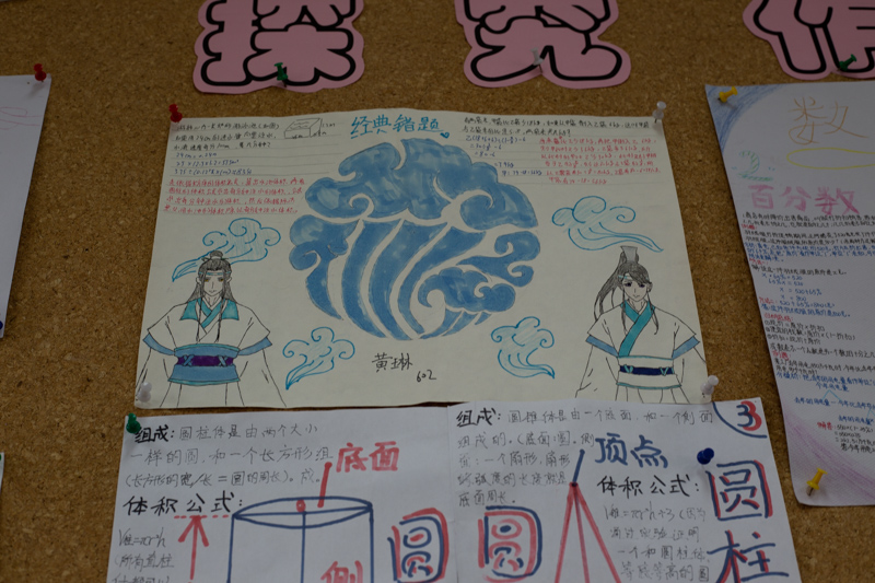 教室后面的墙上挂着优秀的画报