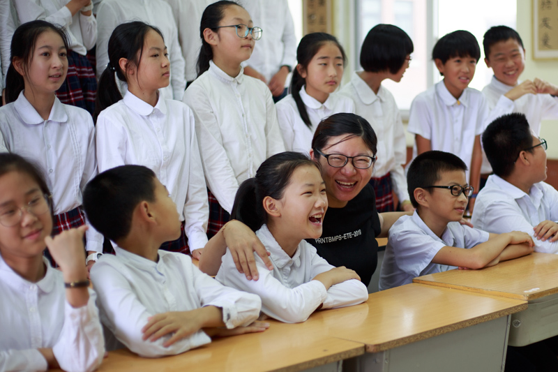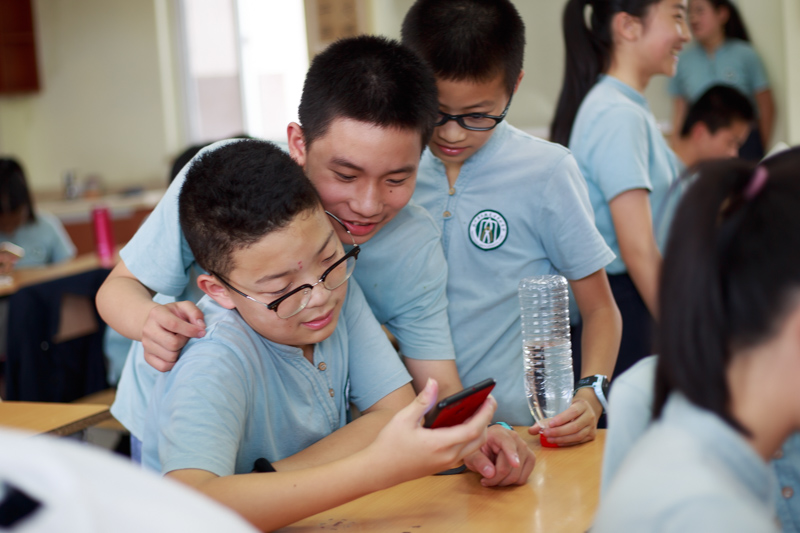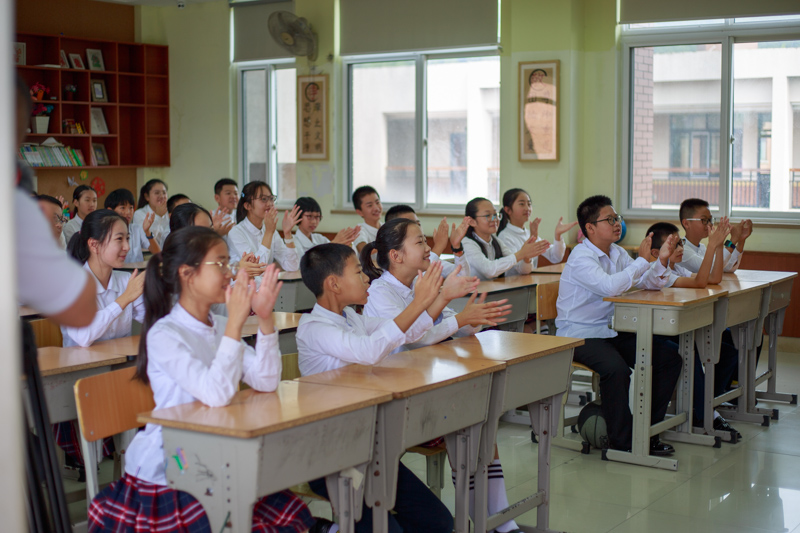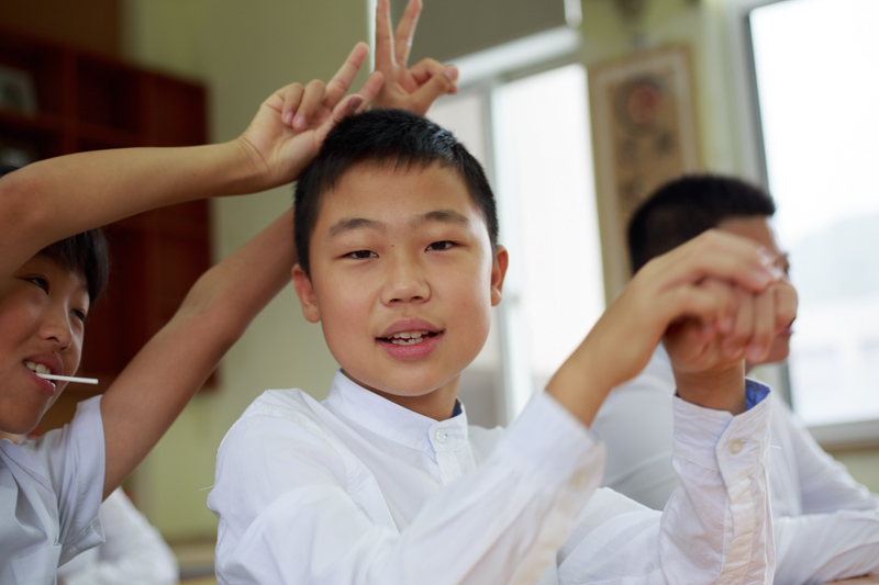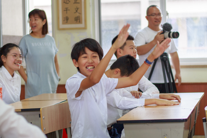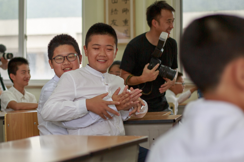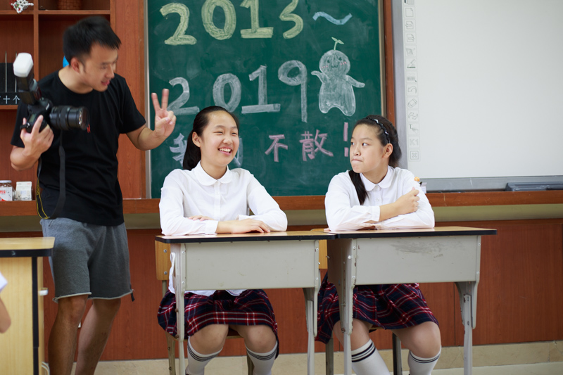 拍完这组,回教室休息,好奇的同学一直在跟着摄影师