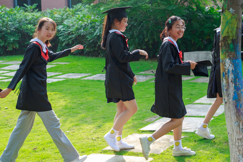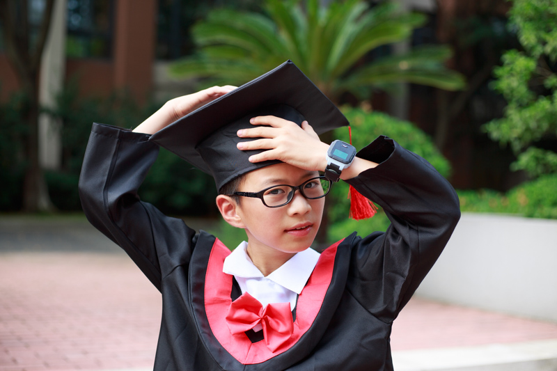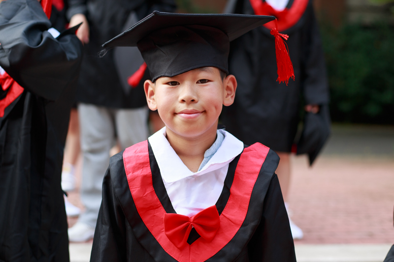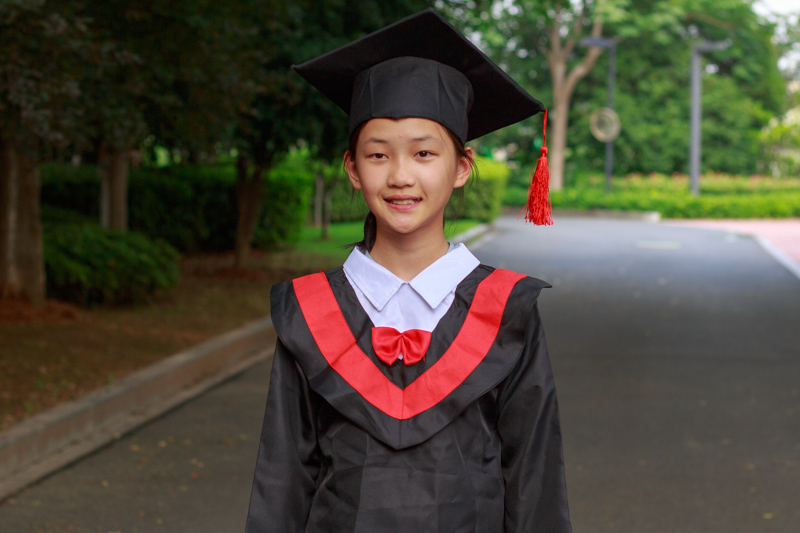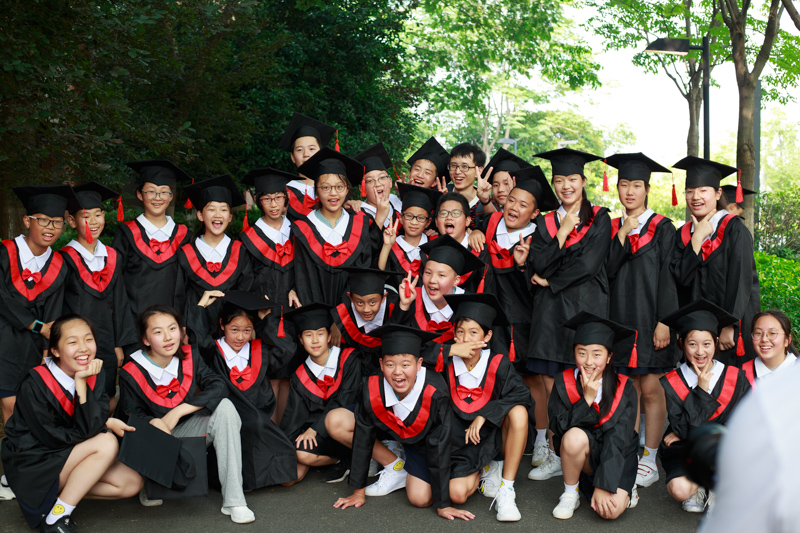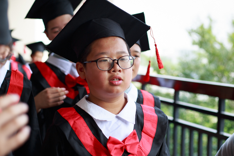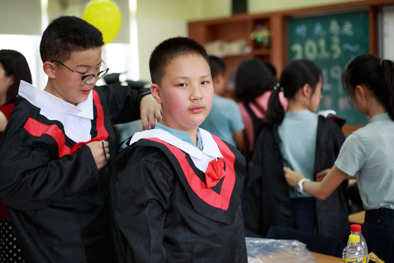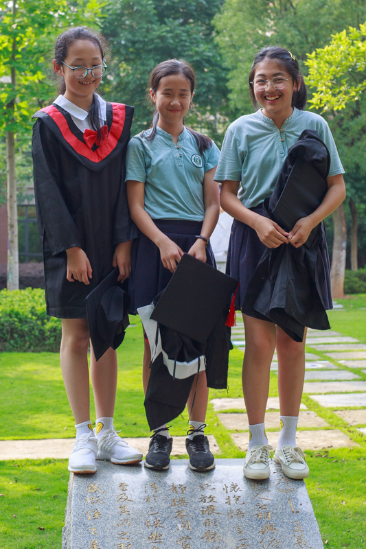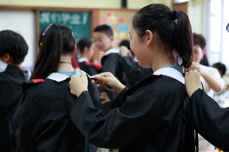 接下来是最重要的环节,学士服拍照,想想我们大学毕业都没穿过,小学毕业就穿上了。相互帮助穿上衣服