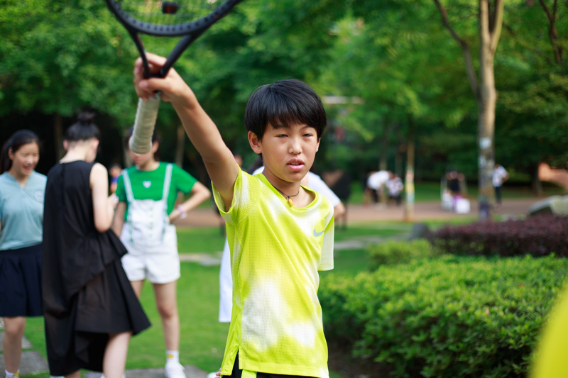陈同学拿起拍子就有杀气