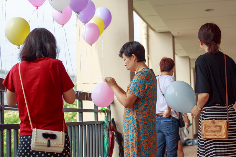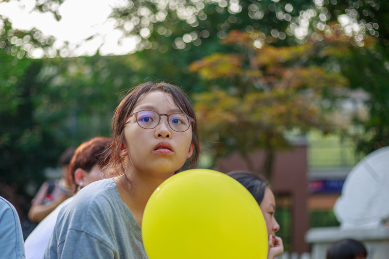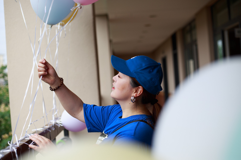 女生们是拿着气球去放飞