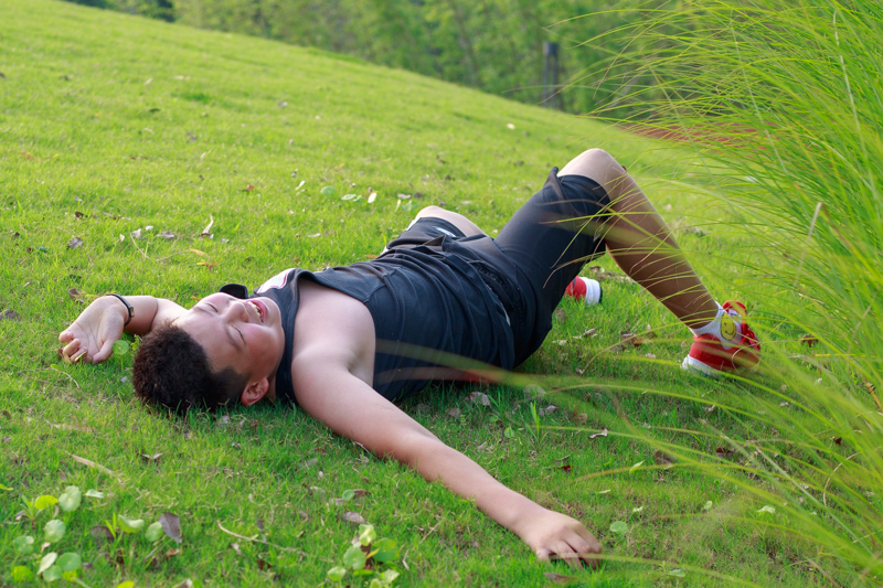 树荫下,男生们在拍电影,要抖起来走路