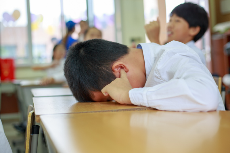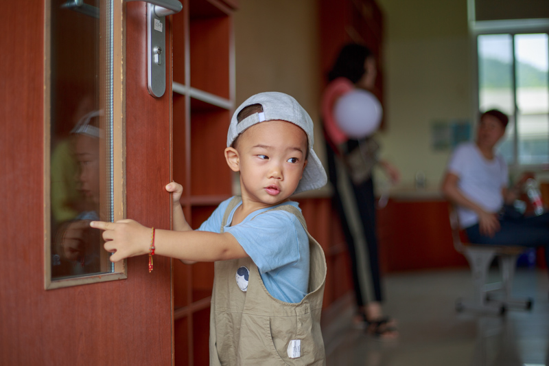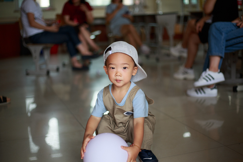 在旁边的教室,家长们在休息,发现一位小萌娃