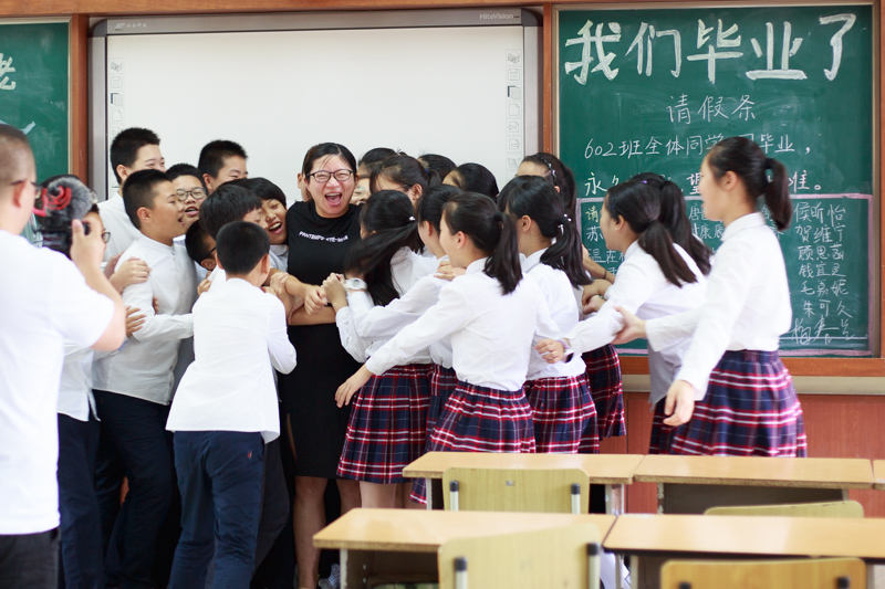 教室里最后一个镜头是合影,因地制宜,站凳子上,站桌子上